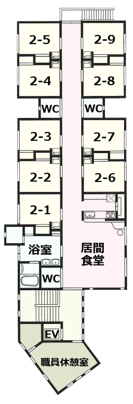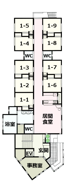 9人1ユニットの少人数で、アットホームな雰囲気のもと共同生活をお送りいただく施設です。